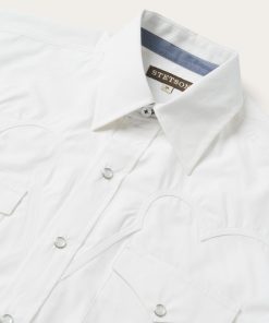 Stetson Men’s Classic Solid Snap Poplin Shirt In Optic White | White