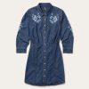 This stylish dress is crafted from 100% rayon, which has a smooth, silky feel and features our exclusive western-inspired Horse Pennies print. It has a scoop neck, drop waist, sleeves gathered at shoulders, elastic cuffs with ruffles, keyhole button closure at center back and side seam pockets. Cut with an easy, flattering drape, the dress allows for all-day comfort and freedom of movement.