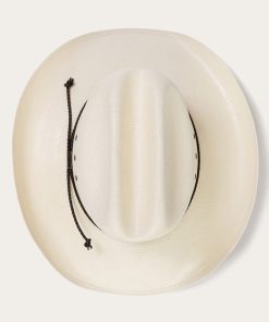 The Carson 10X Cowboy Hat is handwoven one strand at a time from 10X quality shantung straw. It features a 4 ⅜” medium cattleman crown, 3 ¾” medium curved brim and a rugged braided leather hat band. Lightweight, durable and made for long days on the range, it features eyelets in the crown for extra circulation and a genuine leather sweatband for a time-tested, comfortable fit.