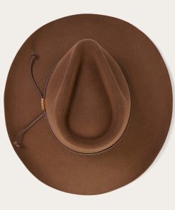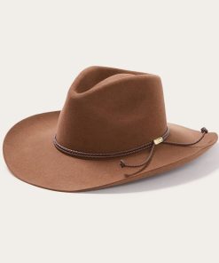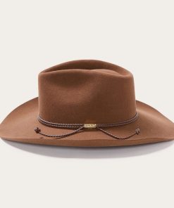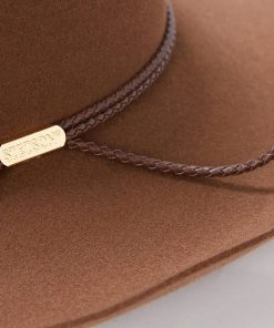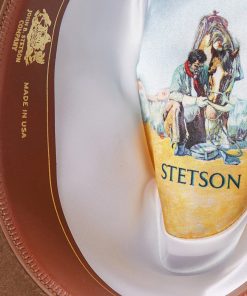 This cowboy hat is defined by a teardrop crown and a subtly curved brim (originally intended to keep hats out of the way of the wearer’s lasso). Authentic details include a braided band with a Stetson branded hat pin, and a handsome illustration inside the crown. At the interior, a brown leather interior sweatband ensures you’ll stay cool and comfortable. Crafted in the USA with high-quality 6x fur felt.