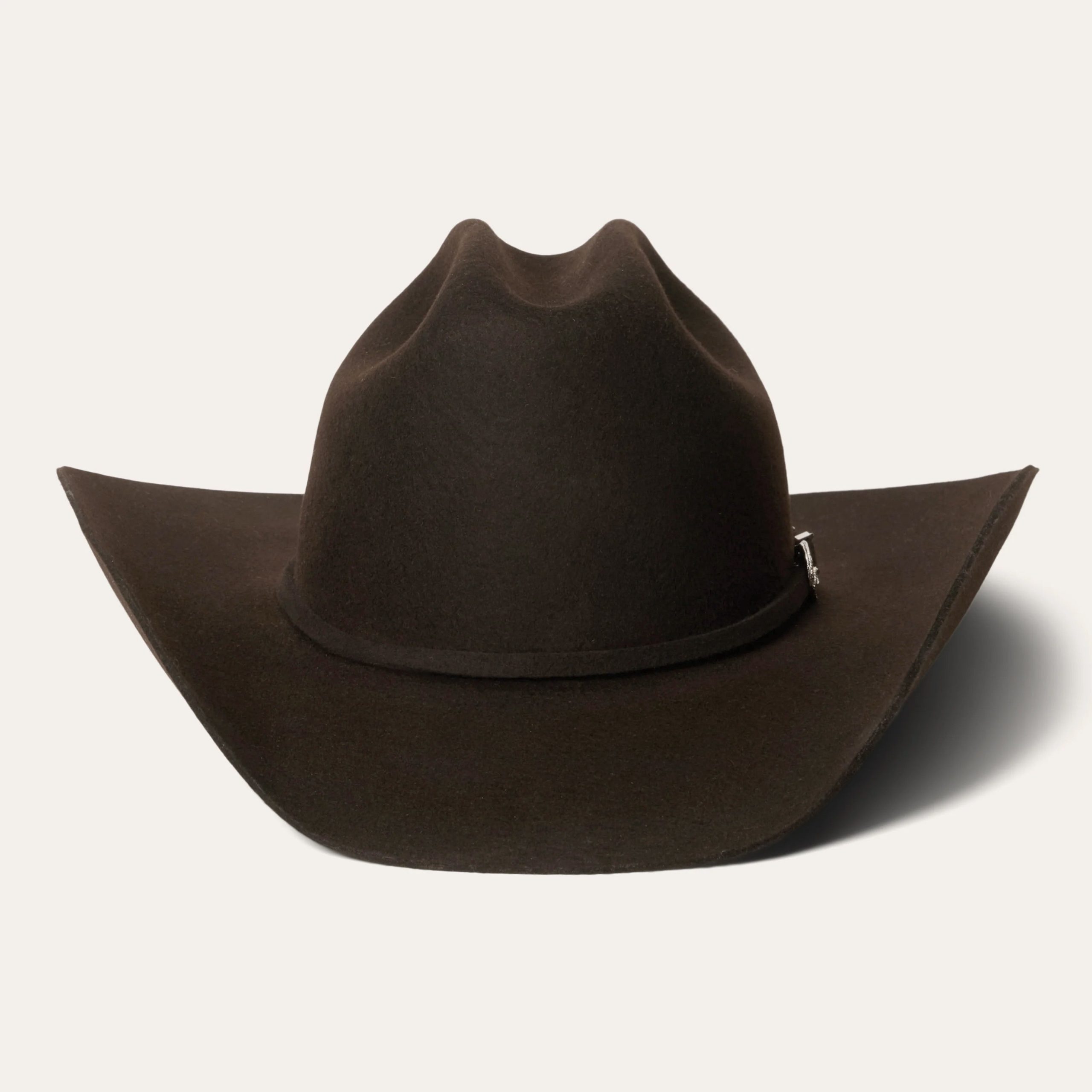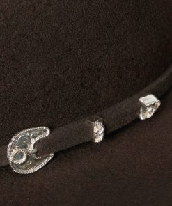 Part of our Buffalo collection, this cowboy hat is made in the USA of high-quality, weather-resistant 4X buffalo felt. Its classic Western profile features a classic cattleman crease, a 4″ brim and a 4 5/8” regular oval crown. Additional details include a leather sweatband, satin lining, and a self-matching hat band with a three-piece silver-toned buckle set, as well as a Stetson hat box.