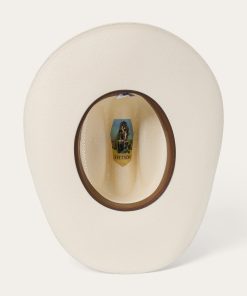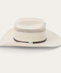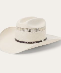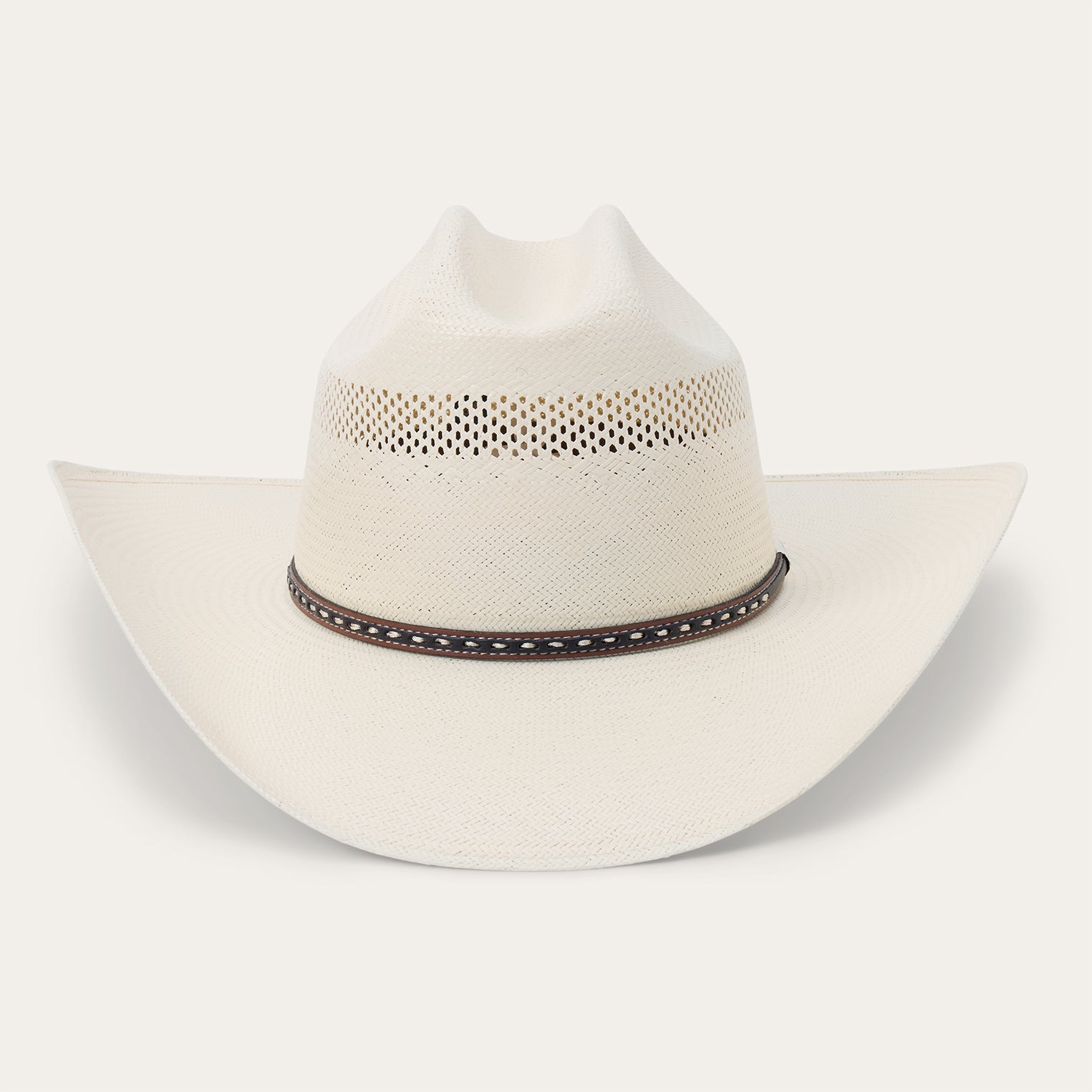 The Crowley is handwoven one strand at a time in the U.S.A. from 10X quality shantung straw. It has a 4 ⅛” cattleman crown, 4 ¼” medium curved brim and a rugged pick stitch leather hatband. All-around venting in the crown provides extra circulation and a genuine leather sweatband provides a time-tested, comfortable fit.