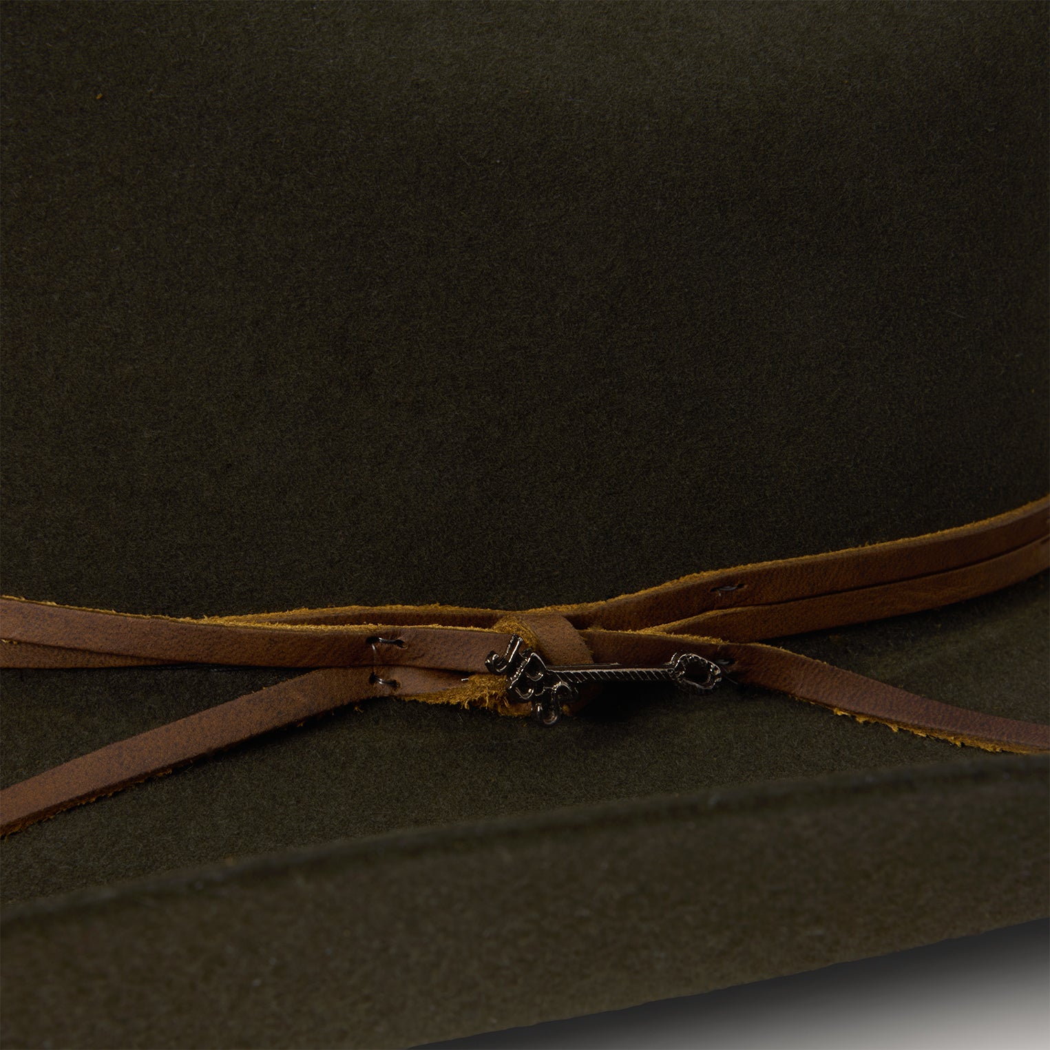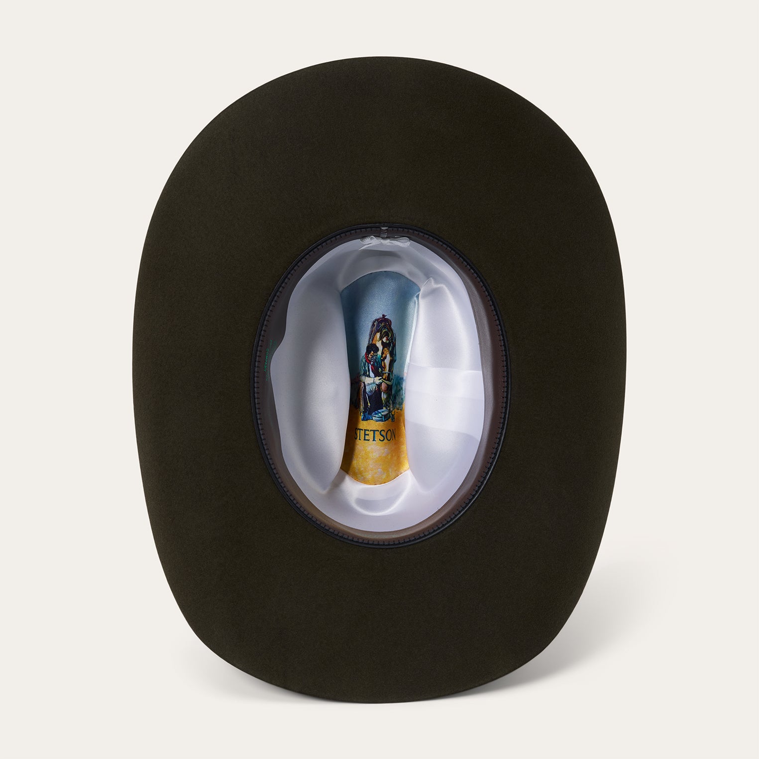 The Gibby combines legendary Stetson quality and classic western style in one timeless package. It’s crafted from our proprietary 6X fur felt, which is prized for its durability and elegant feel, and, as with all hats that come out of our factory in Texas, each Gibby is touched by more than 100 sets of hands during production, resulting in a hat that is designed and built to stand the test of time. It features a 4 5/8” cattleman crown and 4 1/4” brim, and it’s finished with a rugged rawhide leather band. A handsewn genuine leather sweatband and full satin liner provide a time-tested fit and premium comfort.