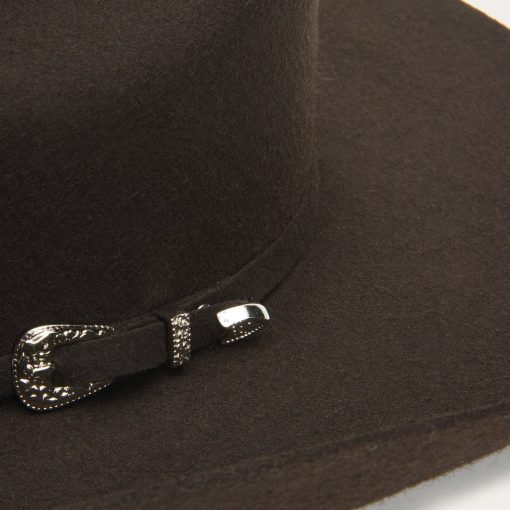 Crafted of high-quality 100% wool felt, this youth cowboy hat features a classic 4” cattleman crown and 4” brim and is finished with a self-felt band and a three-piece silver-tone buckle set. It has a stretch sweatband that’s sized to fit most young buckaroos with a head size up to 54cm.