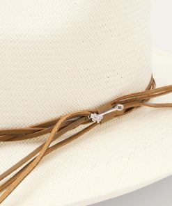Handmade in the U.S.A. from high-quality shantung, the Gus 10X Straw Cowboy Hat has a 3 3/4” brim and a sloped 4” x 5 ½” Gus crown. Its classic western silhouette is enhanced by a braided leather cord hat band, while a genuine leather sweatband ensures a secure fit and all-day comfort.