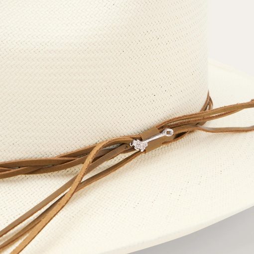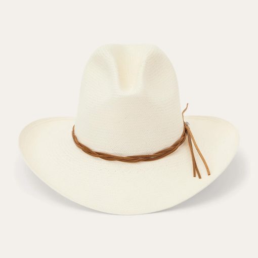 Handmade in the U.S.A. from high-quality shantung, the Gus 10X Straw Cowboy Hat has a 3 3/4” brim and a sloped 4” x 5 ½” Gus crown. Its classic western silhouette is enhanced by a braided leather cord hat band, while a genuine leather sweatband ensures a secure fit and all-day comfort.
