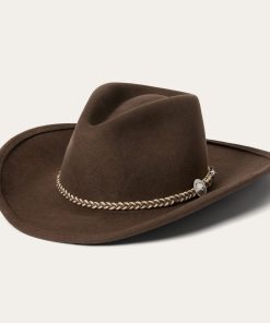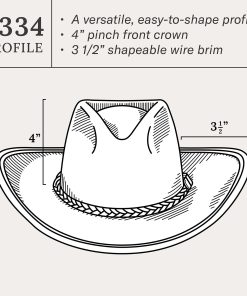 A member of Stetson’s Buffalo Collection — western hats handmade with the finest all-natural buffalo fibers, the Rawhide boasts 3X buffalo fur for durability and water-repellence for long days on the range. Finished with a pinch front crown, interior leather sweatband and a braided hat band accented with a buffalo nickel concho. The Rawhide is crushable and features a wire brim for easy shaping.