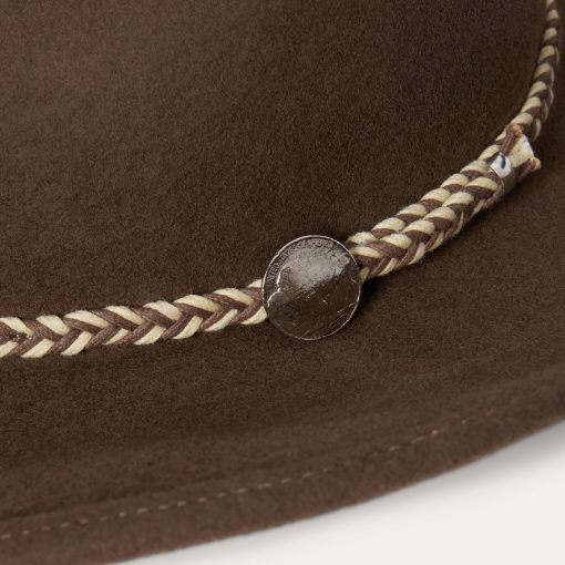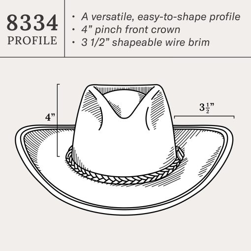 A member of Stetson’s Buffalo Collection — western hats handmade with the finest all-natural buffalo fibers, the Rawhide boasts 3X buffalo fur for durability and water-repellence for long days on the range. Finished with a pinch front crown, interior leather sweatband and a braided hat band accented with a buffalo nickel concho. The Rawhide is crushable and features a wire brim for easy shaping.