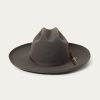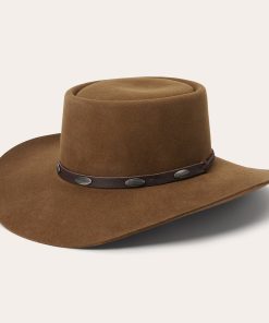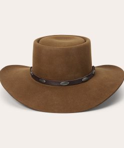 This western-inspired fashion hat brings a welcome pop of Cowboy Core to any look. Its bold silhouette features a statement-making 3 1/2″ telescope crown, 3 1/2” downturn brim and leather hat band with silver-tone conchos. Handmade in the U.S.A. with a firm finish from high-quality wool felt, it’s finished with a faux leather sweatband and satin liner for a comfortable, all-day fit.