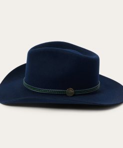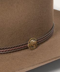 Handmade with pride in Texas, the Woodrow is a statement-making style crafted with a firm finish from high-quality 100% wool felt. It has a 4 1/2” pinch front crown, 3 1/4” brim and a three-cord braided leather hatband and Buffalo nickel pin. A full satin liner provides luxurious comfort and while an absorbent DRI-LEX® sweatband provides a cooling, secure fit.