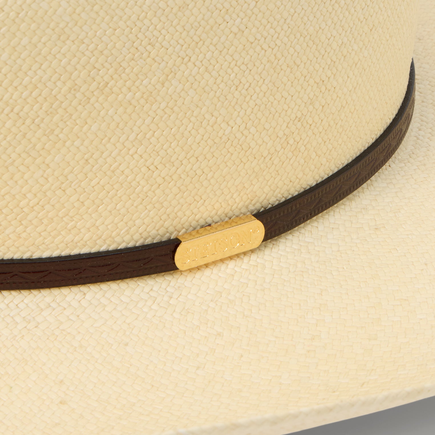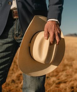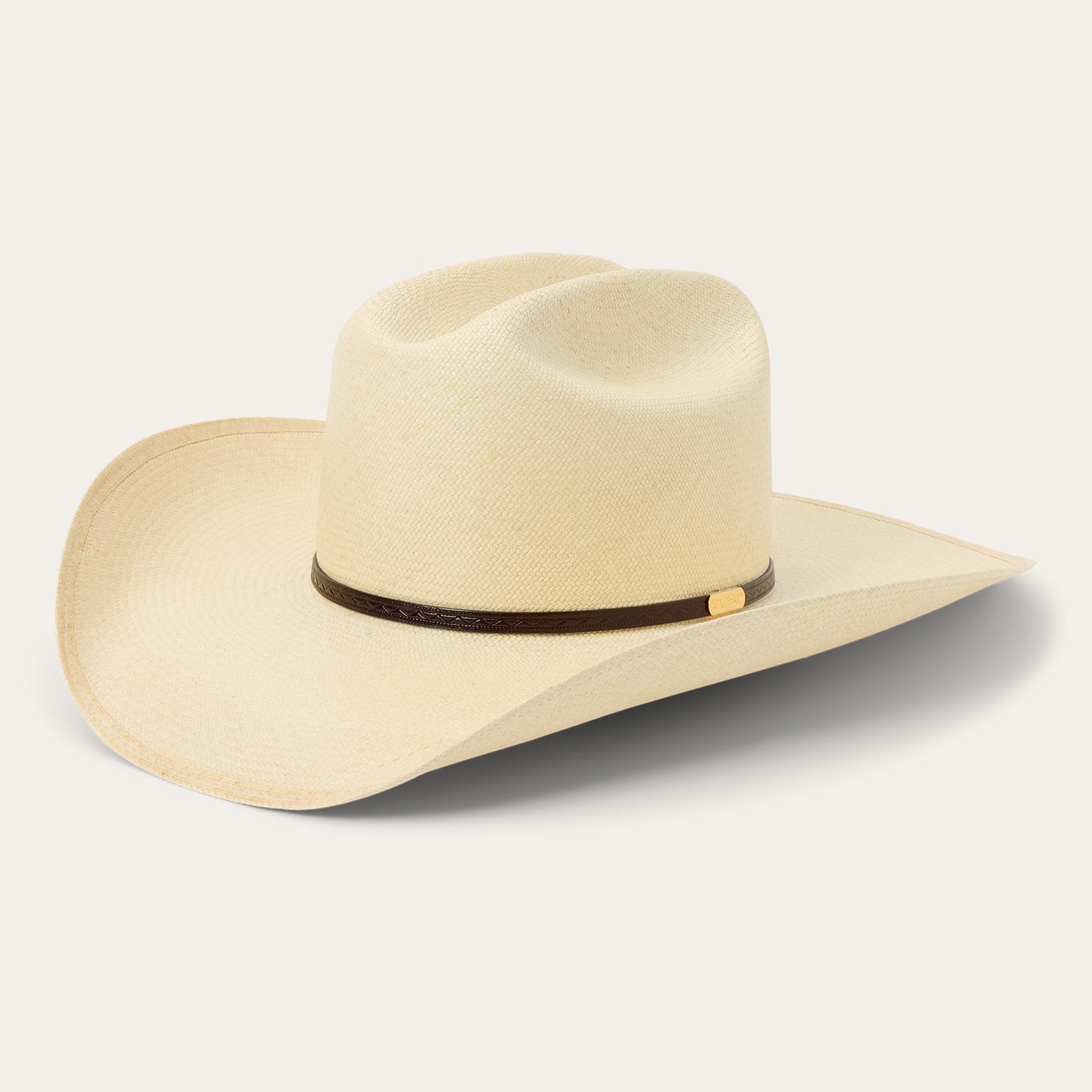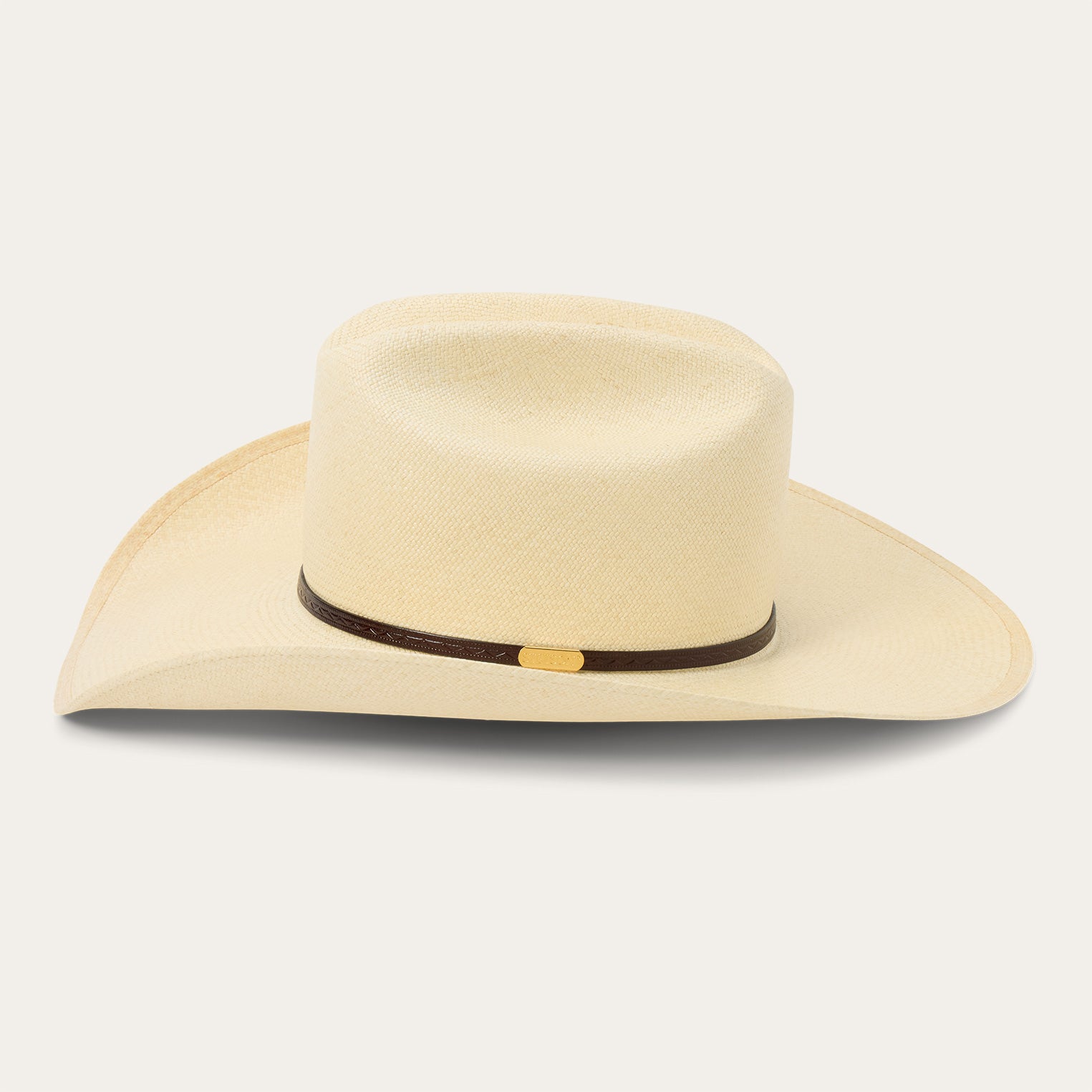 This ultra-premium straw western hat combines a classic western profile with premier grade 20 Panama straw in one timeless package. Grades of Panama straw are determined by the tightness of the weave, with 20 registering as “extra fine,” resulting in a lightweight hat of unbeatable resilience with a smooth, almost fabric-like feel.