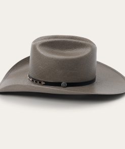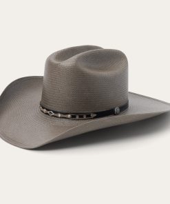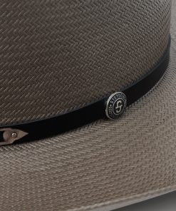 Handwoven one strand at a time in the U.S.A. from 10X quality shantung straw, the Kenton combines our legendary craftsmanship with a timeless western profile and a rich grey tone. It has a 4 ⅛” cattleman crown, 4 ¼” medium curved brim and a studded leather hatband with silver-tone concho. A genuine leather sweatband provides a time-tested, comfortable fit.