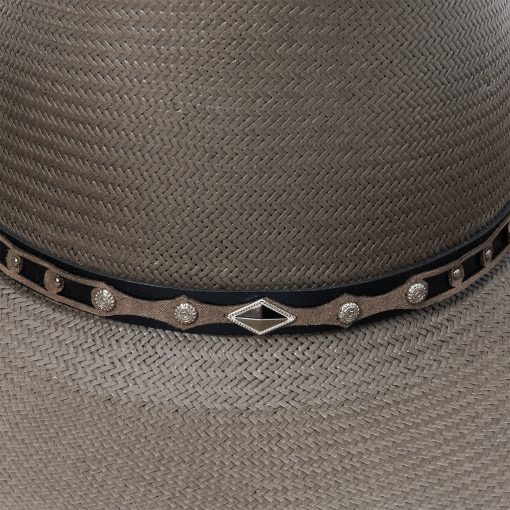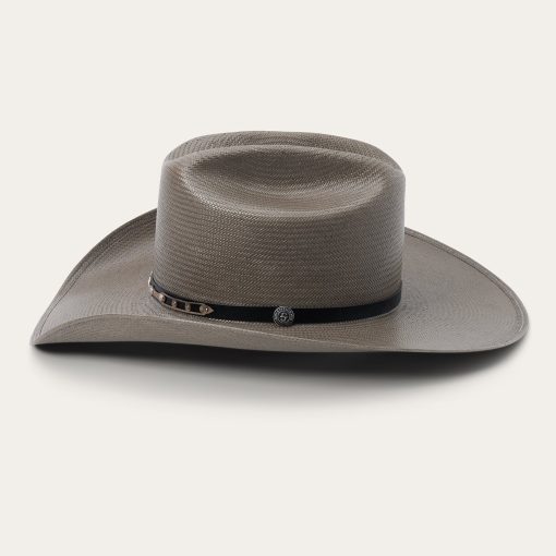 Handwoven one strand at a time in the U.S.A. from 10X quality shantung straw, the Kenton combines our legendary craftsmanship with a timeless western profile and a rich grey tone. It has a 4 ⅛” cattleman crown, 4 ¼” medium curved brim and a studded leather hatband with silver-tone concho. A genuine leather sweatband provides a time-tested, comfortable fit.