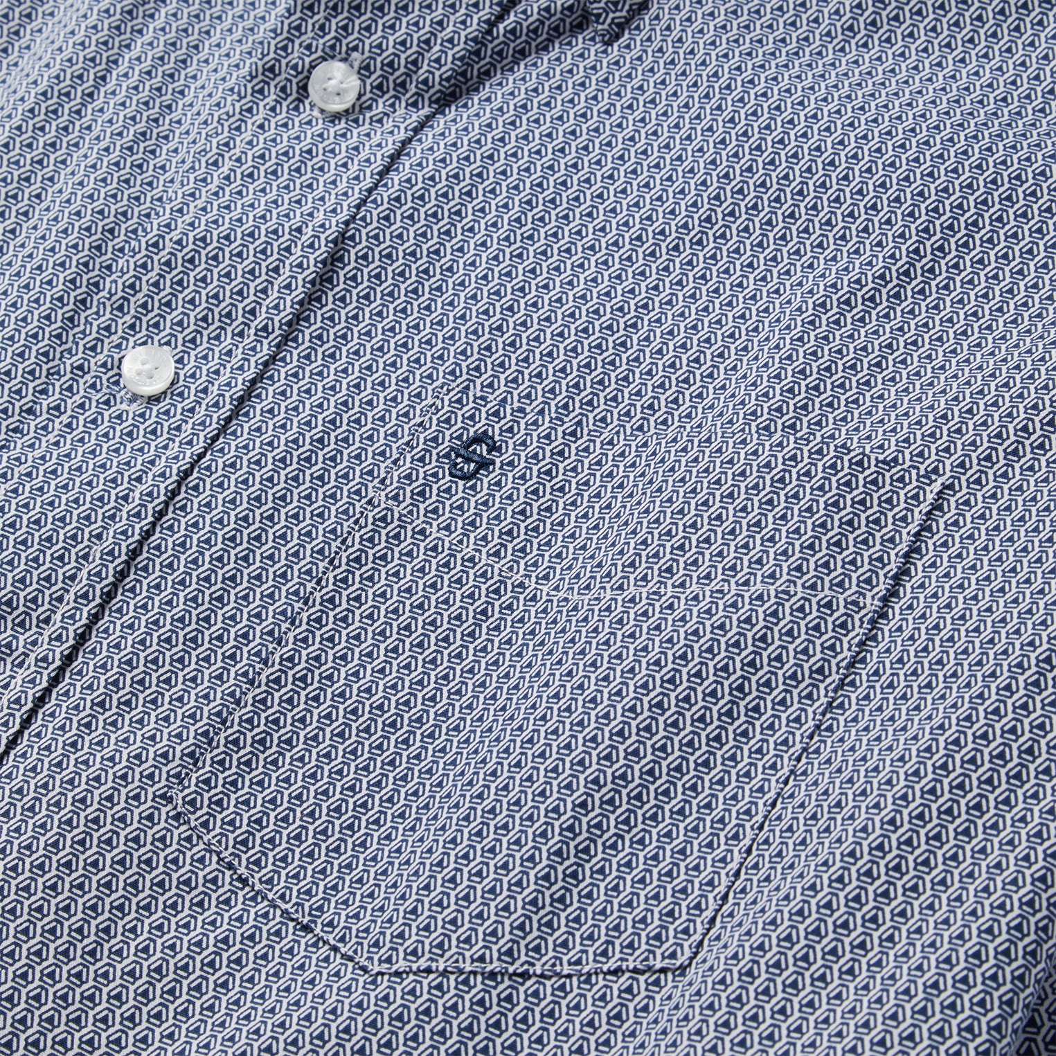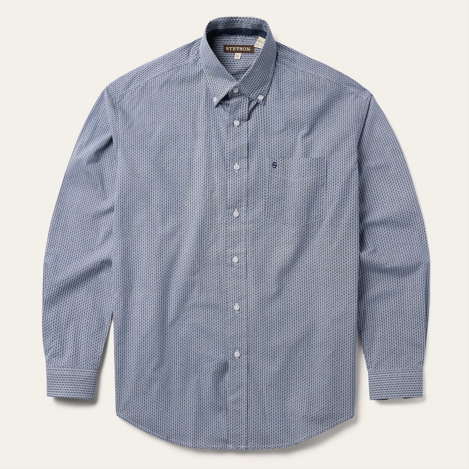 This button-up shirt is crafted from a lightweight cotton poplin with a Blue Deco Geo allover print. It features a straight back yoke with pleat and signature Stetson “S” logo featured on the front left pocket. It has a denim inside trim and the classic button front is finished with stacked logo buttons. Made from 100% cotton for quality and breathability, it has a feel that will only get better with age.