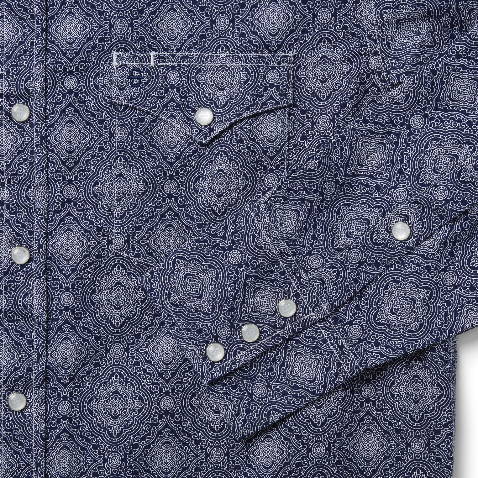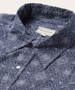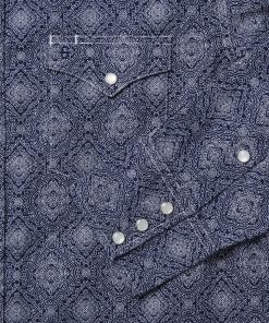 This classic Western shirt features a vintage-inspired allover medallion print and is crafted in a crisp cotton poplin that has been garment washed for a soft feel that will only get better with age. It has a one=point curved back yoke, logo pearl snap front, and three snap cuffs. The Stetson “S” logo is embossed at the left chest pocket and “STETSON” is embossed at the right sleeve placket. Cut trim, for a modern fit, it’s the perfect blend of style and comfort.