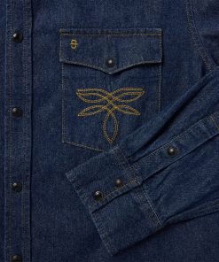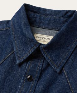 This rugged and stylish western shirt is crafted from raw 100% cotton denim and features statement-making boot-stitch embroidery on both chest pockets. It has single-point front yokes and slightly curved back yoke, single-point pockets with flaps and snaps, subtle Stetson embroidery on the chest and right cuff placket, a classic snap front with opaque snaps and two-snap cuffs. Cut in our Tailored Fit, a versatile style that’s slightly tapered at the sides for a streamlined appearance and a shorter length designed to look great tucked or untucked.
