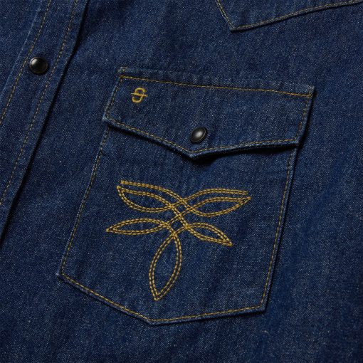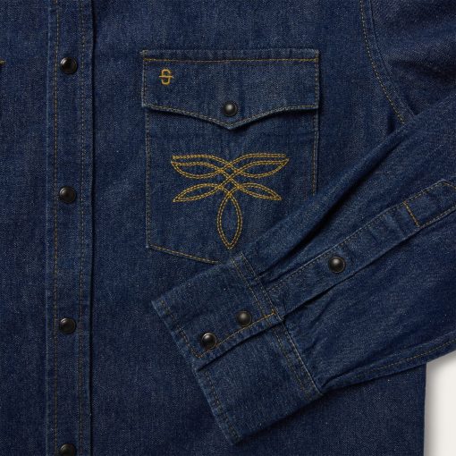 This rugged and stylish western shirt is crafted from raw 100% cotton denim and features statement-making boot-stitch embroidery on both chest pockets. It has single-point front yokes and slightly curved back yoke, single-point pockets with flaps and snaps, subtle Stetson embroidery on the chest and right cuff placket, a classic snap front with opaque snaps and two-snap cuffs. Cut in our Tailored Fit, a versatile style that’s slightly tapered at the sides for a streamlined appearance and a shorter length designed to look great tucked or untucked.