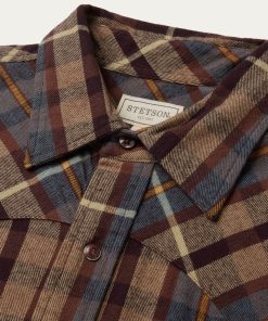 This flannel western shirt is crafted from high-quality brushed cotton twill that’s been garment washed for a soft feel that will only improve over time. Its authentic details include a single-point curved back yoke, a spread collar with collar stays, subtle Stetson embroidery on the chest and right cuff placket, a classic snap front and three-snap cuffs. Cut in our original fit for a traditional silhouette that allows for freedom of movement.