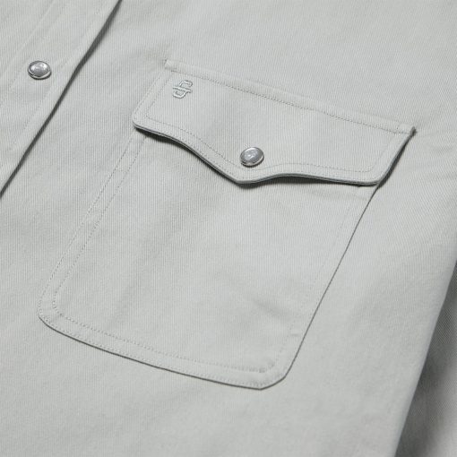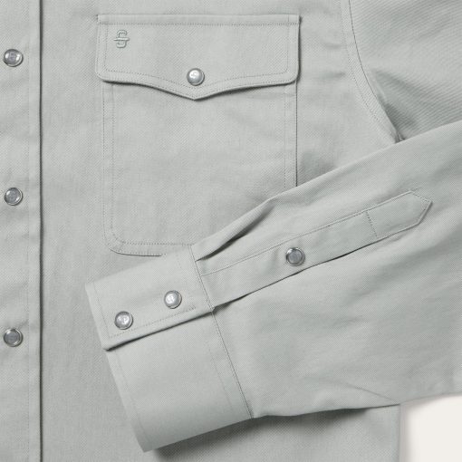 This rugged western shirt is crafted from high-quality 100% brushed cotton twill. It has no front yokes, a straight back yoke, rectangular pockets withs single-point flaps, two-snap cuff and classic snap front with pearl snaps. Cut in our standard fit for a traditional silhouette that allows for comfort and freedom of movement for any adventure the day brings.