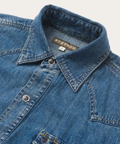This premium Western shirt is constructed with contrast stitching and has a classic, loose cut for riding and outdoor activity. It’s made from 100% cotton that hangs well while keeping its shape and only gets better with age. Two snap-closure pockets, a spread collar, and a one-point curved back yoke and single point front yokes give this denim shirt the perfect dose of character.Iconic Western details include Stetson-branded snap buttons on the front placket, cuffs, and pockets, as well as custom embroidery on the chest and right cuff. Exceedingly durable and always comfortable, it’s an all-occasion essential.