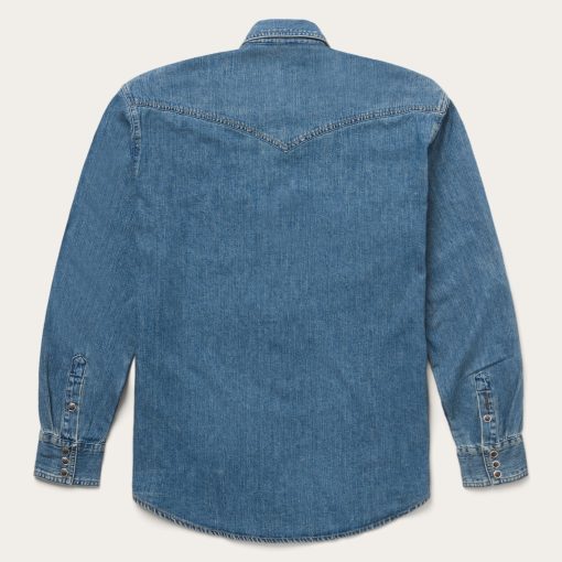 This premium Western shirt is constructed with contrast stitching and has a classic, loose cut for riding and outdoor activity. It’s made from 100% cotton that hangs well while keeping its shape and only gets better with age. Two snap-closure pockets, a spread collar, and a one-point curved back yoke and single point front yokes give this denim shirt the perfect dose of character.Iconic Western details include Stetson-branded snap buttons on the front placket, cuffs, and pockets, as well as custom embroidery on the chest and right cuff. Exceedingly durable and always comfortable, it’s an all-occasion essential.
