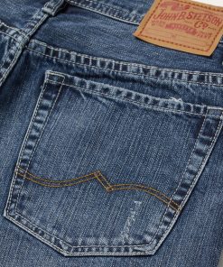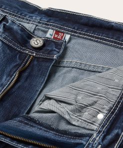 These 1520 Fit Standard Straight Leg jeans are crafted from 100% cotton denim with a medium blue rinse. Featuring a mid rise and relaxed thigh, the loose knee and slightly tapered bootcut leg opening create a modern silhouette. The classic 5-pocket style features Stetson branded buttons, rivets, and zipper, and a Western “V” shape stitching on the back pocket. Finsihing touches, like hand sanding and grinding details complete the jeans for that perfect lived-in look.