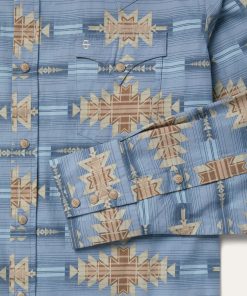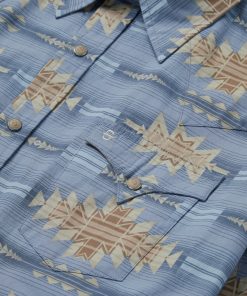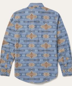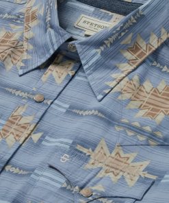 This snap-front shirt is crafted from 100% cotton poplin woven with our Aztec-inspired Desert Horizon print, and garment-washed for a lived-in look and feel. Authentic details include a three-snap cuff, and snaps embossed with our signature “S” throughout. Designed for a modern trim fit, with a collar that is reinforced with a denim strip on the inside band.