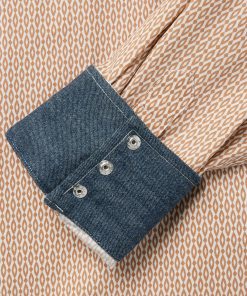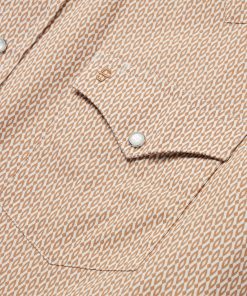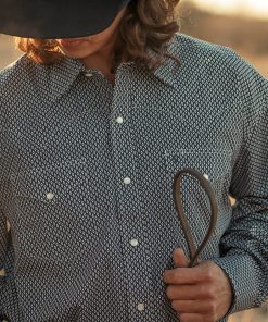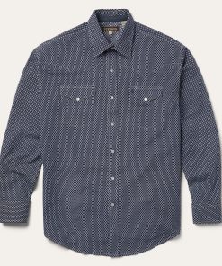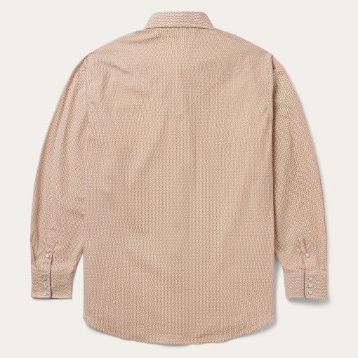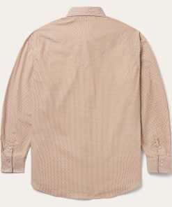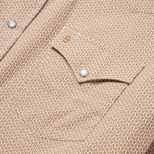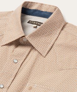 This western shirt is crafted from crisp, lightweight 100% cotton poplin and features an exclusive Orange Diamond print. It has a one point ultra deep curved back yoke, three snap cuffs, the Stetson “S” embroidered on the front left pocket, and “STETSON” embroidered on the right sleeve placket. The classic snap front features logo pearl snaps and is finished with contrast denim inside trim.