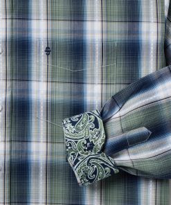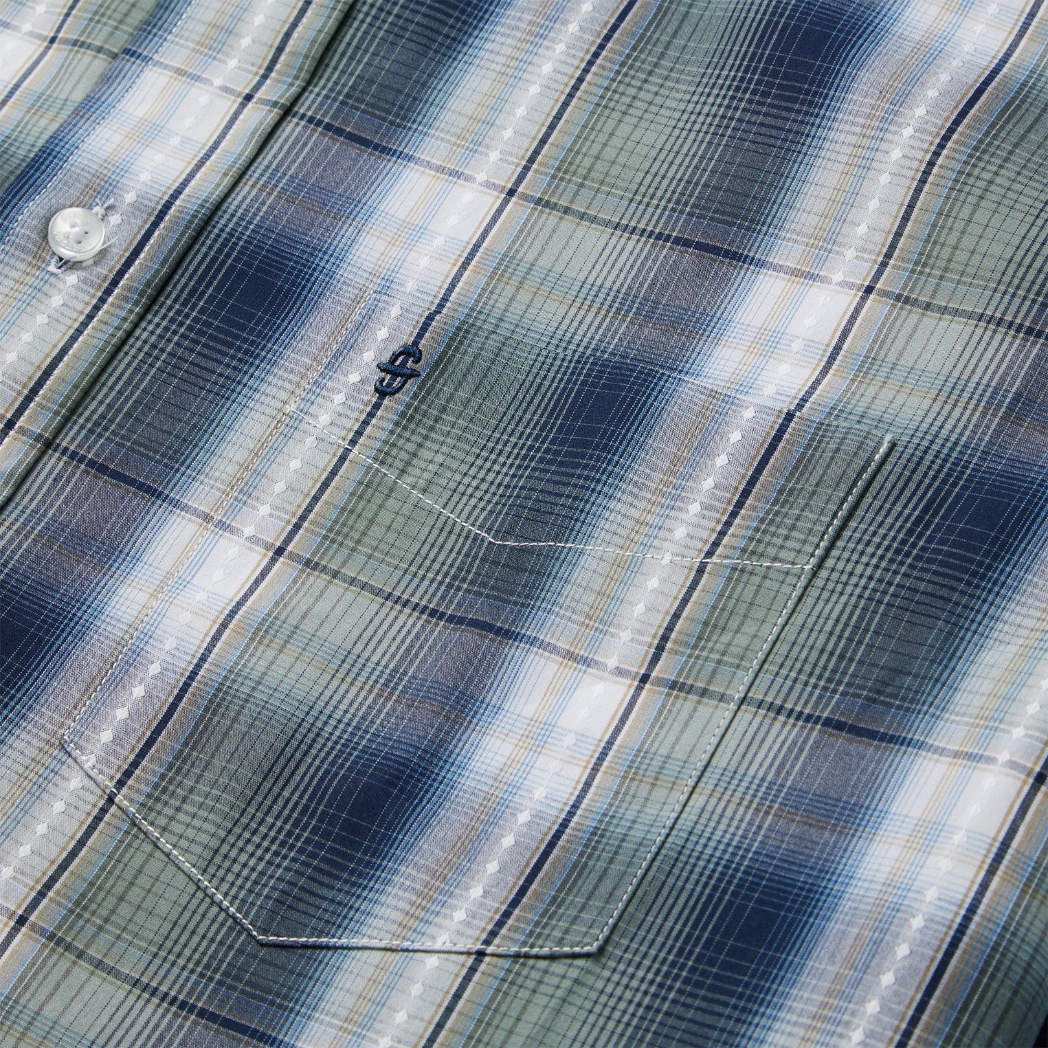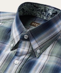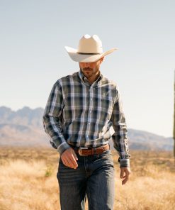 This button-up shirt is crafted from a yarn dyed Lucky Diamond plaid with dobby stitch. It features a straight back yoke with pleat, Stetson “S” logo embossed on the front left pocket, and “STETSON” embossed on the right sleeve placket. It has a contrast inside trim and a two-button adjustable mitered edge cuff. The classic button front is finished with pearl logo buttons and it is crafted with 100% cotton for quality and breathability. The feel of this shirt will only get better with age.