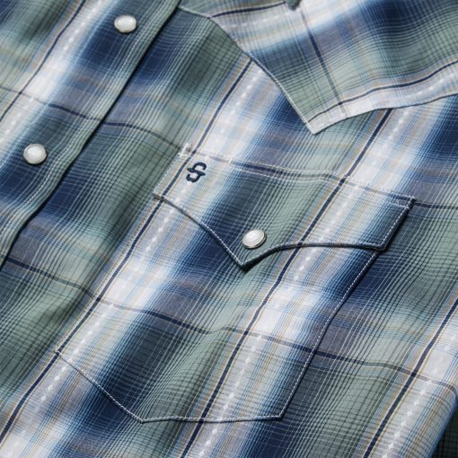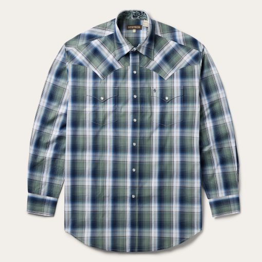 This Western shirt is crafted from a yarn dyed Lucky Diamond plaid with dobby stitch. It features a one-point ultra-deep curved back yoke, logo pearl snap front, and three snap cuffs. The front left pocket is adorned with the Stetson “S” logo and the right sleeve placket is embossed with “STETSON”. It has a contrast inside trim and is crafted with 100% cotton for quality, breathability and a soft feel that will only get better with age.