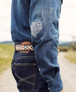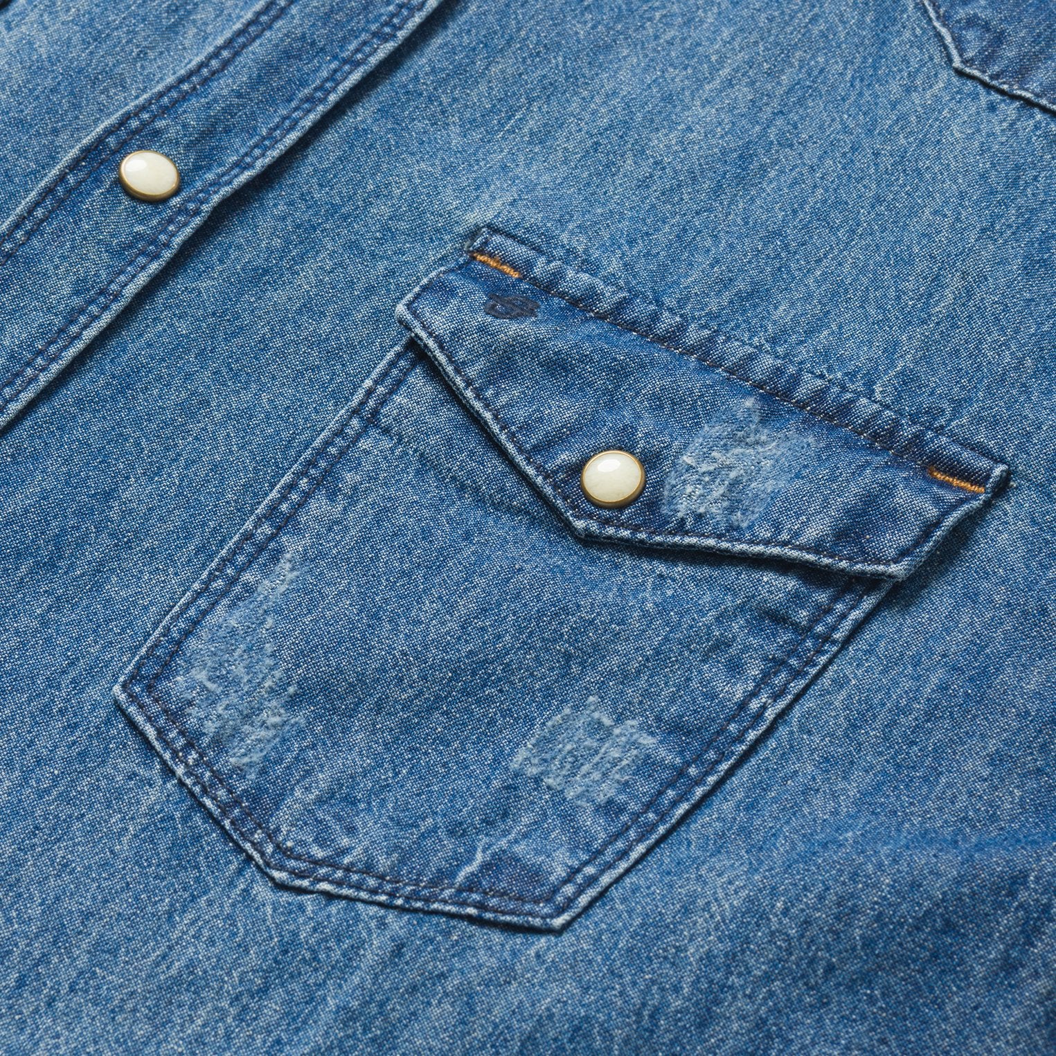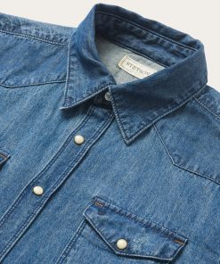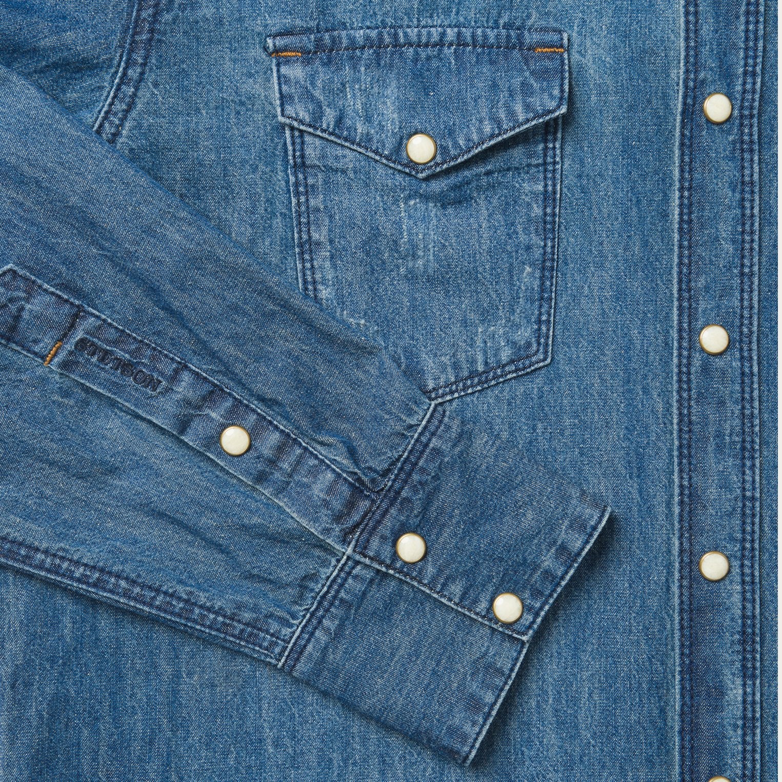 This premium Western shirt is constructed with contrast stitching and has a fitted, modern cut. It’s made from 100% cotton that hangs well while keeping its shape and only gets better with age. Two snap-closure pockets, a spread collar, and a shallow straight back yoke give this denim shirt the perfect dose of character.Iconic Western details include Stetson-branded snap buttons on the front placket, cuffs, and pockets, as well as custom embroidery on the chest and right cuff. Exceedingly durable and always comfortable, it’s an all-occasion essential.