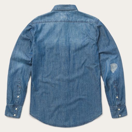 This premium Western shirt is constructed with contrast stitching and has a fitted, modern cut. It’s made from 100% cotton that hangs well while keeping its shape and only gets better with age. Two snap-closure pockets, a spread collar, and a shallow straight back yoke give this denim shirt the perfect dose of character.Iconic Western details include Stetson-branded snap buttons on the front placket, cuffs, and pockets, as well as custom embroidery on the chest and right cuff. Exceedingly durable and always comfortable, it’s an all-occasion essential.
