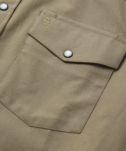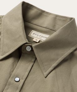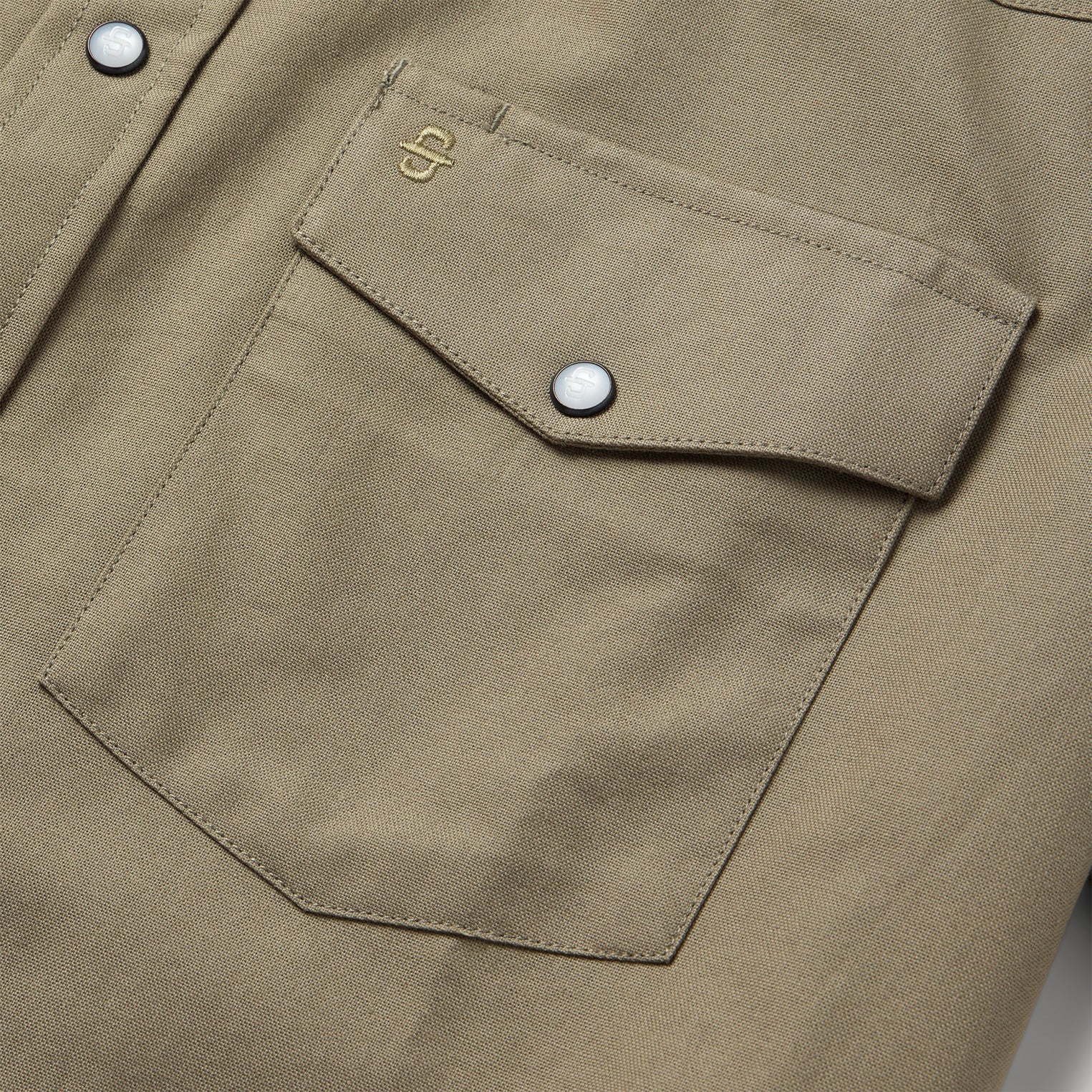 This short-sleeve western shirt is crafted from high-quality 100% cotton oxford that has a dusty olive tone and an extra-soft feel that will only get better with time. It has one point shallow front and back yokes, a spread collar and a classic snap front with pearl logo snaps. It’s cut in our Tailored Fit, a versatile style that’s slightly tapered at the sides for a streamlined appearance and a shorter length designed to look great tucked or untucked.