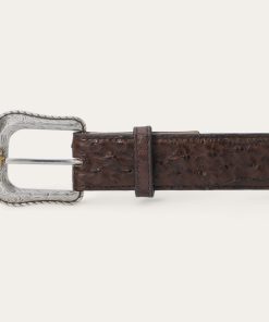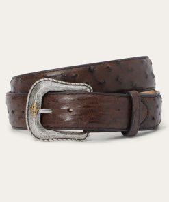 Crafted from genuine Ostrich leather, this belt has a 1 ½” wide antique cognac Ostrich leather strap with western tabs. It features seven holes on the point end to ensure a proper fit for all body types and is finished with a two-tone Stetson buckle. Combining timeless western style with statement-making luxury materials, each of our exotic belts embodies our legendary commitment to quality and attention to detail.