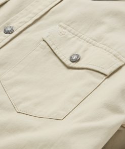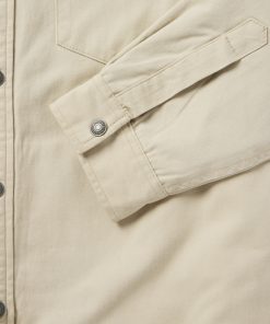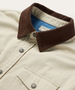 This rugged, versatile shirt jacket is crafted from high-quality 100% cotton twill which has a sturdy and substantial feel. It features a contrast corduroy collar, full snap front and shirttail hem, along with a one-point shallow back yoke with pleats, one-point pockets & flaps, an inside patch pocket, side seam pockets and one-snap cuff.