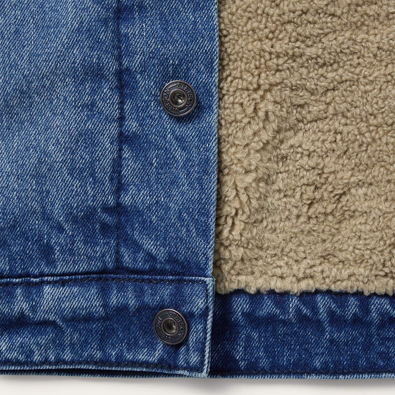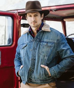 Like all of our outerwear, this rugged denim jacket is fit for the frontier. Crafted from durable, high-quality 100% cotton denim, it features a faux sherpa lined collar and body and nylon-lined sleeves. Additional details include straight front and back yokes, one-point curved pocket flaps and welt hand pockets. Stetson logo buttons and rivets are featured on the button front, cuffs and adjustable side tabs—a sign of quality you can rely on.