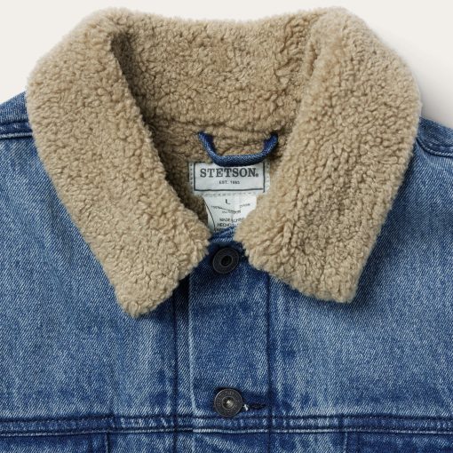 Like all of our outerwear, this rugged denim jacket is fit for the frontier. Crafted from durable, high-quality 100% cotton denim, it features a faux sherpa lined collar and body and nylon-lined sleeves. Additional details include straight front and back yokes, one-point curved pocket flaps and welt hand pockets. Stetson logo buttons and rivets are featured on the button front, cuffs and adjustable side tabs—a sign of quality you can rely on.