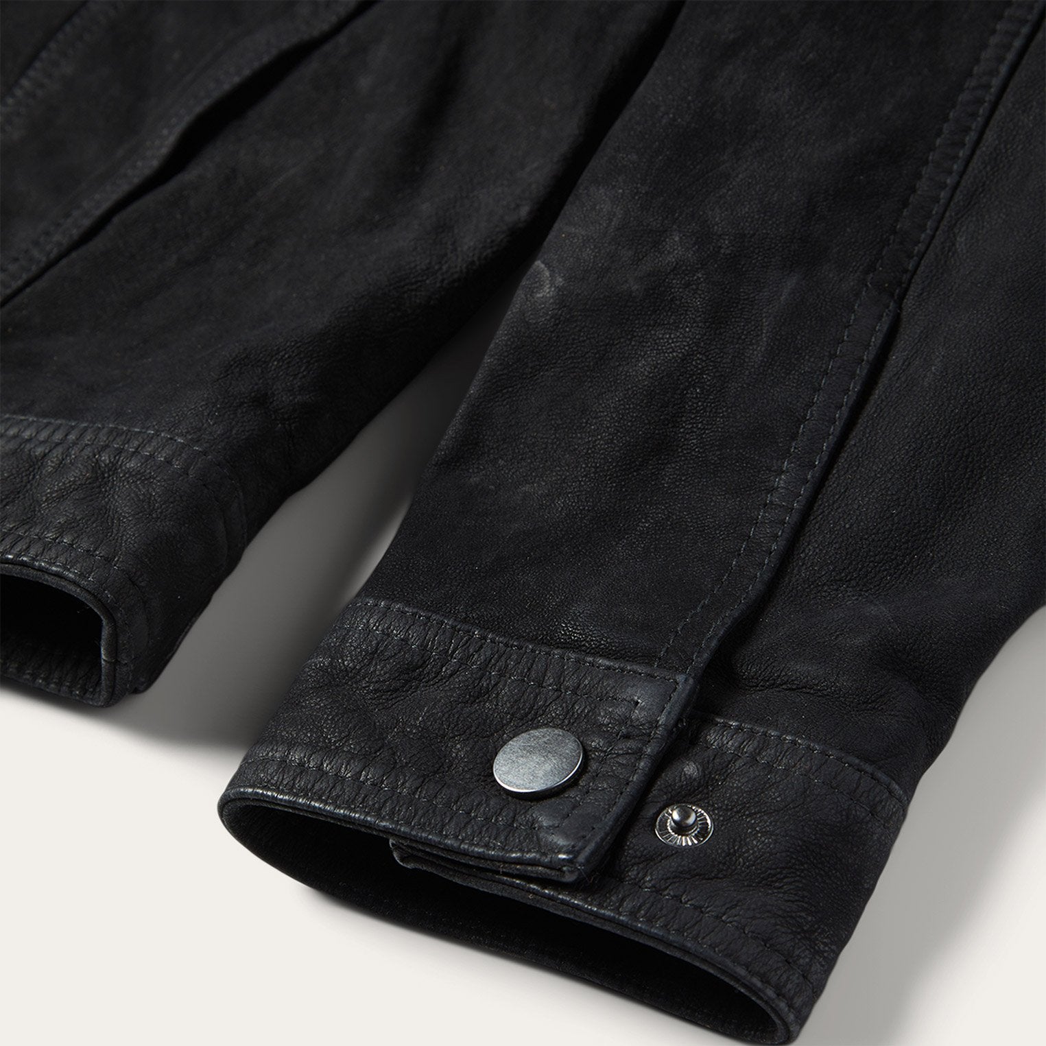 An homage to the all-American jean jacket – but made with tough as nails, high-quality leather. This distressed jacket is warm, rugged and durable, and features a fast-action snap front, straight front and back yokes, and single-point chest pockets.