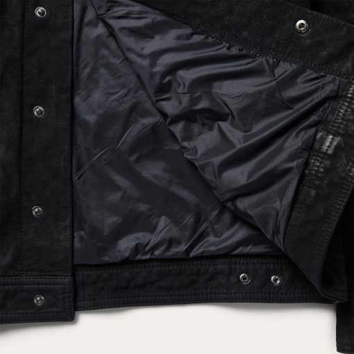 An homage to the all-American jean jacket – but made with tough as nails, high-quality leather. This distressed jacket is warm, rugged and durable, and features a fast-action snap front, straight front and back yokes, and single-point chest pockets.