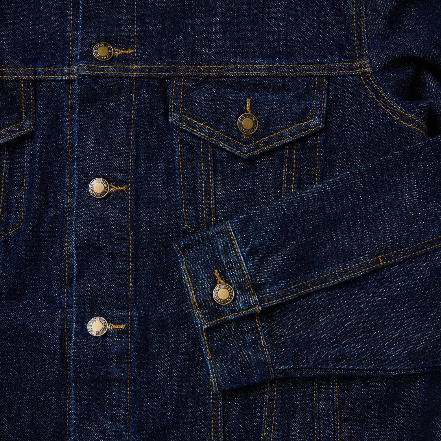 This classic denim trucker is crafted from 100% raw cotton denim that will develop its own patina—and only become more personal and comfortable with time and wear. As far as trucker jackets go, this one is fully loaded; with classic gold-top stitching, straight front and back yokes, single-point curved pocket flaps, welt hand pockets, adjustable back tabs and a handy locker loop. Finished with subtle Stetson “S” embroidery and logo buttons—a sign of quality you can rely on.
