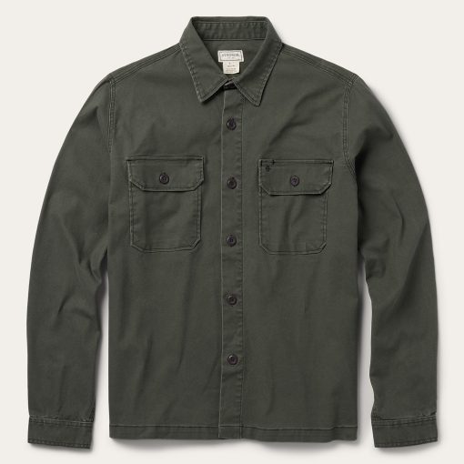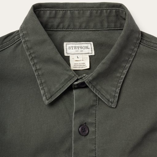 This snap front western shirt is crafted from 100% cotton and features a yarn-dyed rustic plaid with satin stitch. Two snap-closure pockets, a spread collar, contrast inside trim Rugged and stylish, this canvas shirt jacket is crafted from a durable cotton canvas with just a hint of stretch. It has a spread collar and a straight back yoke, while its front features large rectangular mitered chest pockets and flaps and button closure, straight hem and a one-button cuff. At Stetson, we use the toughest materials and fabric to provide you with the best Western outerwear for men who spend their days in the great outdoors.