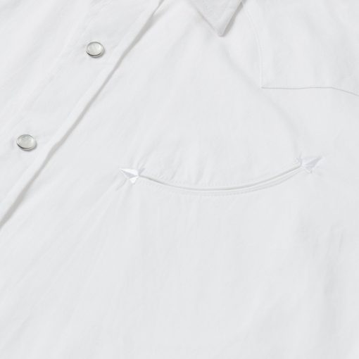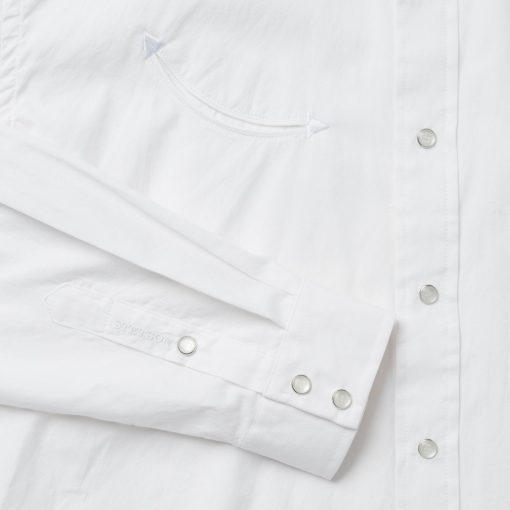 A tried-and-true Western classic in a loose cut for riding and outdoor activity — this is the kind of resilient and dependable shirt you’ll reach for every morning. It’s made from 100% cotton that hangs well while keeping its shape and only gets better with age. Two western smile pockets with arrow points, a spread collar, and a one-point curved front and back yoke give this button-down the perfect dose of character.Iconic Western details include Stetson-branded snap buttons on the front placket and cuffs, as well as custom embroidery on the chest and right cuff. Exceedingly durable and always comfortable, it’s an all-occasion essential.