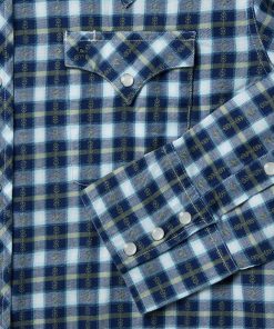 This Western shirt is crafted from a yarn dyed plaid cotton twill dobby with a one-point ultra-deep curved back yoke. It features a Stetson “S” logo embossed on the front left pocket, “STETSON” embossed on the right sleeve placket, and contrast inside trim. It has a 3 snap cuff and classic snap front featuring logo pearl snaps. This shirt is garment washed for a soft feel that only gets better with age and is cut trim for a modern, comfortable fit.