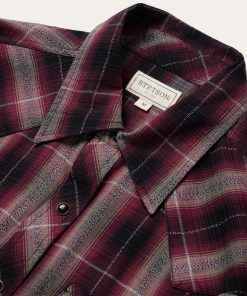 We set the standard for snap fronts. They’re not just Western-inspired, they’re imbued with a Western spirit. This modern fit shirt is made from rugged and durable 100% cotton that has been yarn-dyed for rich, lasting color and made to soften with age and wear. Featuring a classic red marl plaid, it has a one-point, ultra-deep curved back yoke, subtle “S” and “Stetson” embroidery at the chest and right sleeve placket, a three-snap cuff and a classic snap front featuring opaque logo snaps.