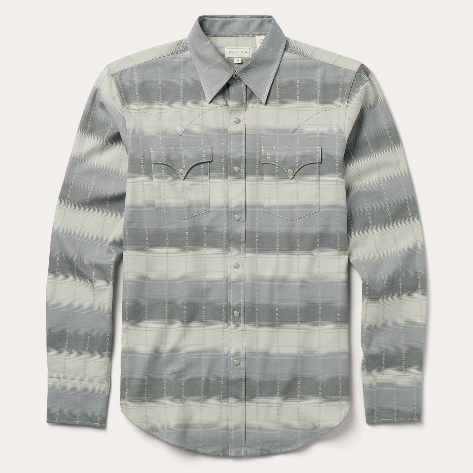 We set the standard for snap fronts. They’re not just Western-inspired, they’re imbued with a Western spirit. This modern fit shirt is crafted from rugged and durable 100% cotton twill that has been yarn-dyed for rich, lasting color and made to get better with age and wear. Featuring our exclusive serape dobby print, it has a one-point, ultra-deep curved back yoke, subtle “S” and “Stetson” embroidery at the chest and right sleeve placket, a three-snap cuff and a classic snap front featuring opaque logo snaps.