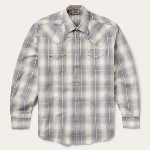 This western shirt is crafted from high-quality 100% cotton and features an exclusive Smoke Diamonds plaid with satin and dobby stitch. It has a one point curved front yoke, two point ultra deep curved back yoke, contrast inside trim, classic snap front with logo snaps, and three snap cuffs, along with embroidered logo details. Cut in our relaxed Classic Fit, a traditional working cowboy style that offers full freedom of movement and a longer hem that’s designed to stay tucked-in while riding.