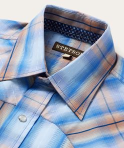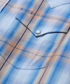 This short-sleeve western shirt is crafted from high-quality 100% cotton dobby and features an exclusive Sunrise plaid with satin stitch. It has a one point ultra-deep curved back yoke, classic snap front with pearl logo snaps, contrasting inside trim fabric, and an embroidered logo detail.