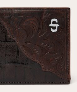 Made from top-grain leather, this bi-fold wallet features a brown embossed croco print and a tooled brown leather western overlay with an embossed Stetson logo. At once rugged and refined, each of our wallets embodies our legendary commitment to quality and attention to detail.