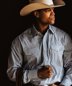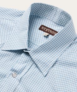 Stetson Men’s Two Stripe Check Western Shirt | Blue