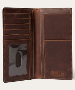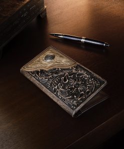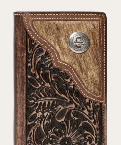 Made from top-grain leather, this checkbook features vintage brown tooled, hand-sanded brown leather with a brindle hair-on-hide inlay and silver-tone Stetson concho. At once rugged and refined, each of our wallets embodies our legendary commitment to quality and attention to detail.